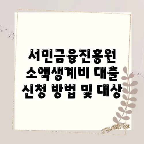 서민금융진흥원은 저소득층과 저신용자를 위한 다양한 금융 지원 프로그램을 운영하고 있습니다. 그 중 하나가 바로 소액생계비 대출입니다. 이 대출은 생계유지가 어려운 분들에게 큰 도움이 될 수 있습니다. 이 글에서는 서민금융진흥원의 소액생계비 대출 신청 방법과 대상에 대해 자세히 알아보도록 하겠습니다. 함께 한 걸음씩 살펴보아요.