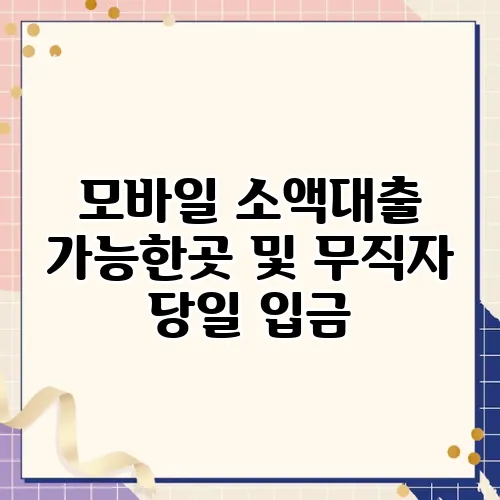 모바일 소액대출은 요즘 많은 사람들이 필요로 하는 금융 서비스입니다. 특히, 무직자라도 당일 입금을 받을 수 있는 방법을 알고 있다면 더욱 유용합니다. 오늘은 이러한 모바일 소액대출 가능한 곳과 무직자도 이용할 수 있는 대출 방법에 대해 함께 알아보겠습니다. 이 글이 여러분에게 큰 도움이 되길 바랍니다.